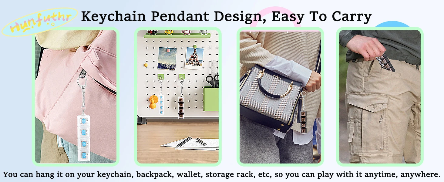 *Loud keyboard Fidget: The keyboard clicker is perfect for playing, you can use it to relieve your emotions at work or to kill time in general and good for releasing the stress in your brain. Keychain fidget clicker makes your hands more flexible, and its surface feels very smooth to the touch effect on your fingertips, helping to relax your mind and body,eliminate stress and anxiety!
