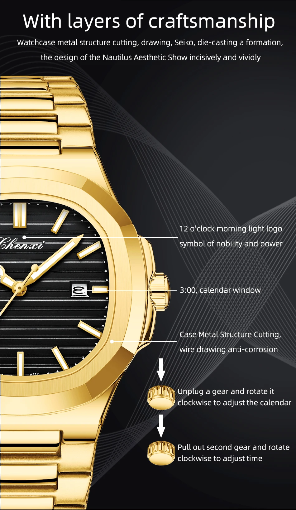 Watches For Men Luxury CHENXI Brand Waterproof Calendar Luminous Watch Man Gold Stainless Steel Quartz Wristwatch Male Clock